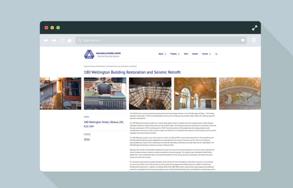 AAR is an Engineering consultant in Ottawa, Ontario. The client asked for a new website that would feature the many projects they had worked on over the years. Some of the photos of the projects were spectacular while others were very low resolution or even restricted. So it was something that needed to be taken into consideration when designing the look and feel. Their old website was a jumble of information without a clear menu structure. The menu was one of the more challenging things I worked on. It was unique in the fact that they wanted not only a submenu but also categories people could search through. In the end this was a website I was very proud of, it met all the client’s goals, as well as my own.